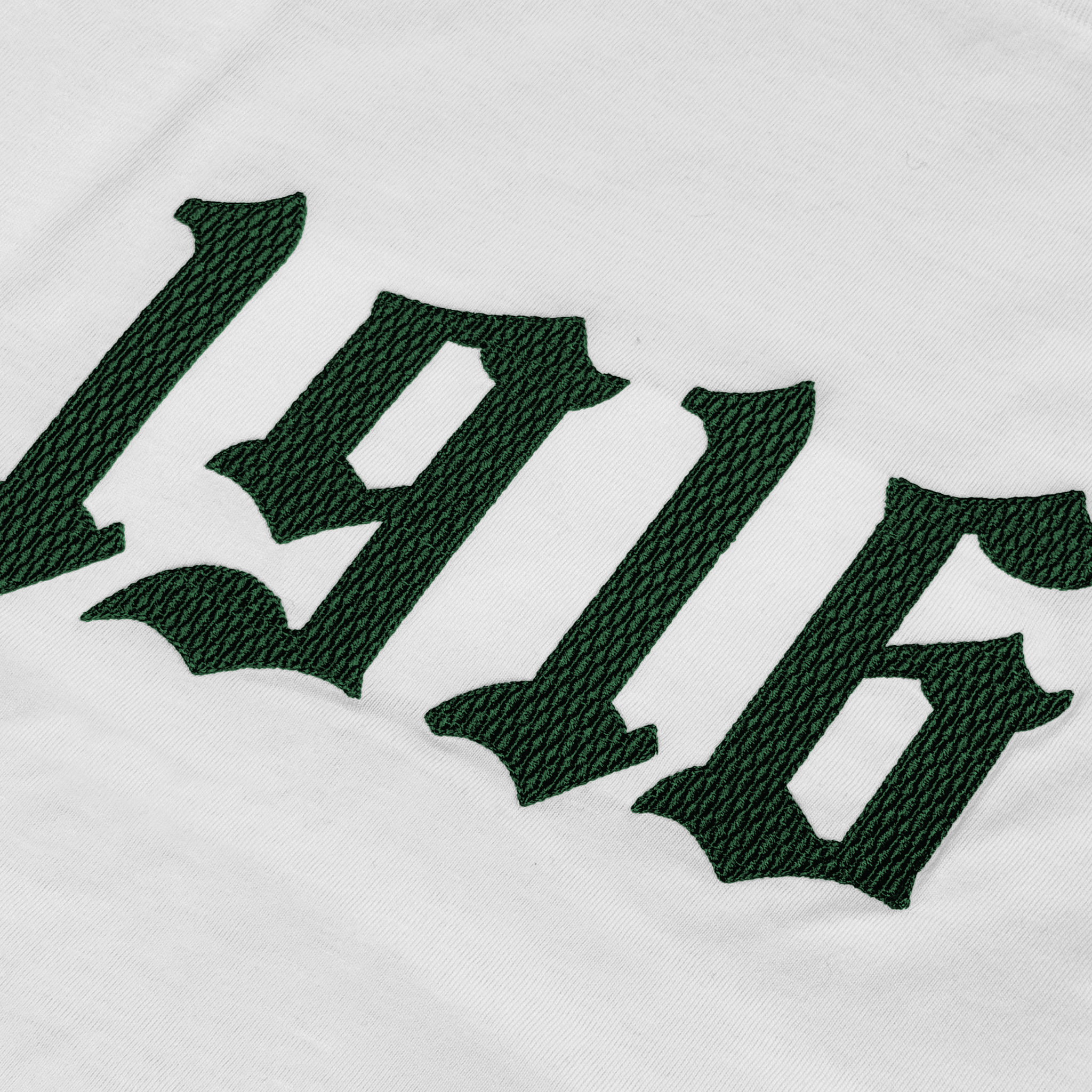 W tym projekcie postawiliśmy na surową formę z mocnymi akcentami. Centralnym punktem jest haft “1916” umieszczony z przodu – wykonany z najwyższą precyzją, stanowi wyraźne odwołanie do dumnej historii klubu. Ale to nie wszystko. Na karku znajdziesz drugi, subtelniejszy detal: haft “Warsaw Football Club”. To ukłon w stronę tradycji i międzynarodowego sznytu, który dodaje koszulce charakteru premium. Bez zbędnego przepychu, za to z ogromnym ładunkiem dumy.