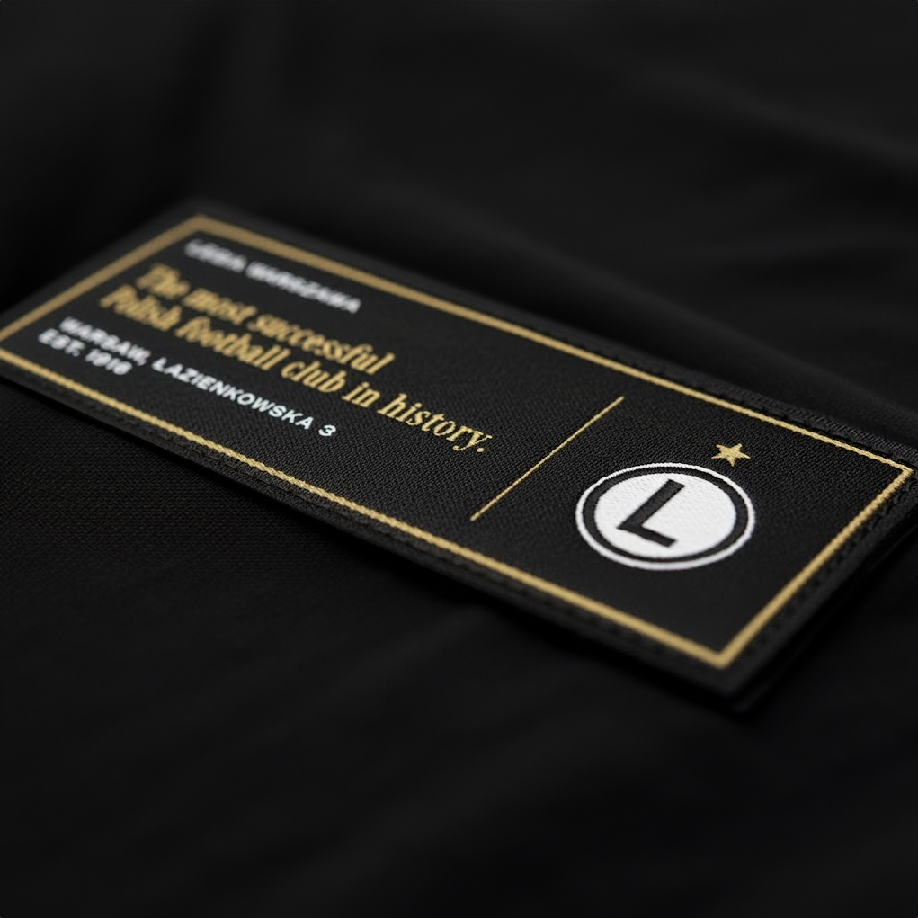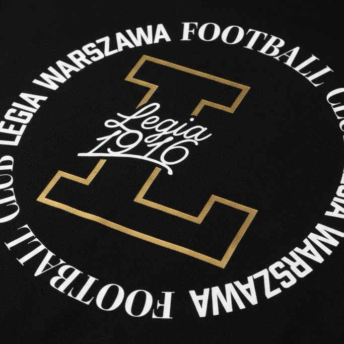 Z przodu, na wysokości piersi, znajdziesz delikatne, okrągłe logo w biało złotym kolorze. W jego centrum umieszczona jest stylizowana litera “L” z napisem “Legia 1916”. Całość otacza napis “FOOTBALL CLUB LEGIA WARSZAWA” . To subtelne, ale kompletne i eleganckie pokazanie, komu kibicujesz. Na lewym rękawie umieściliśmy charakterystyczny, czarna naszywka z tłoczonym napisem LEGIA – nowoczesny akcent, który dodaje charakteru.