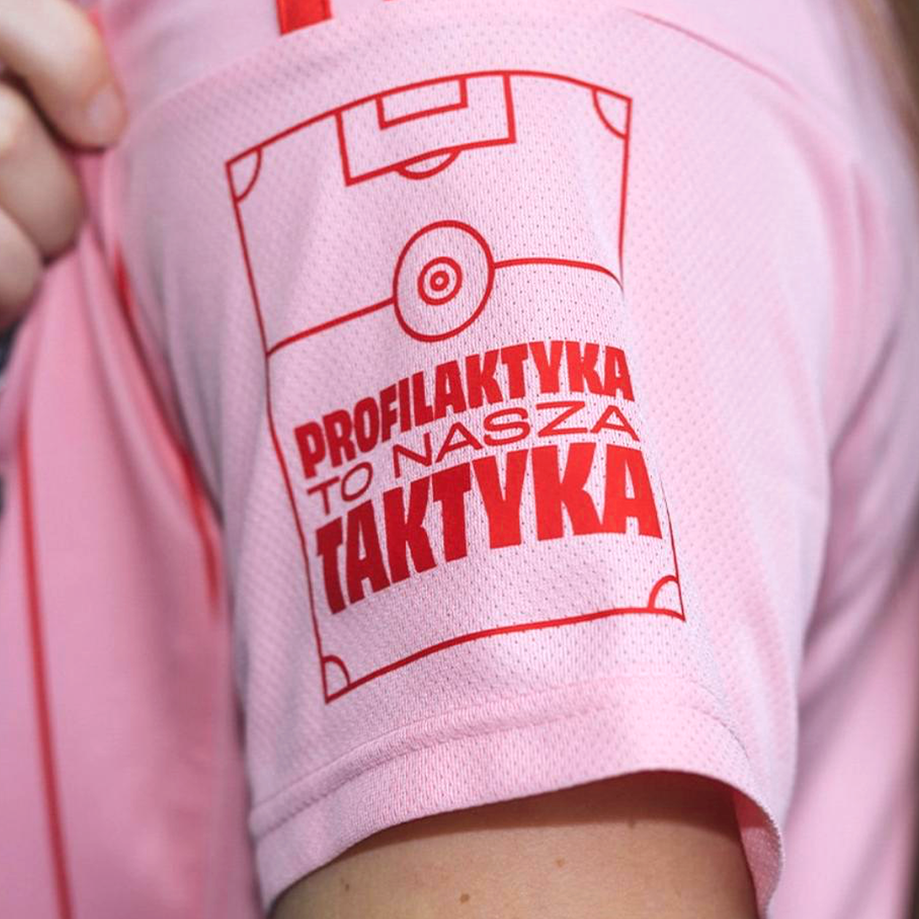 To coś więcej niż strój sportowy – to symbol walki z nowotworem piersi w ramach Różowego Października. Najważniejszym elementem tej limitowanej edycji jest dedykowana grafika umieszczona na rękawku, przedstawiająca boisko z hasłem: „PROFILAKTYKA TO NASZA TAKTYKA”.