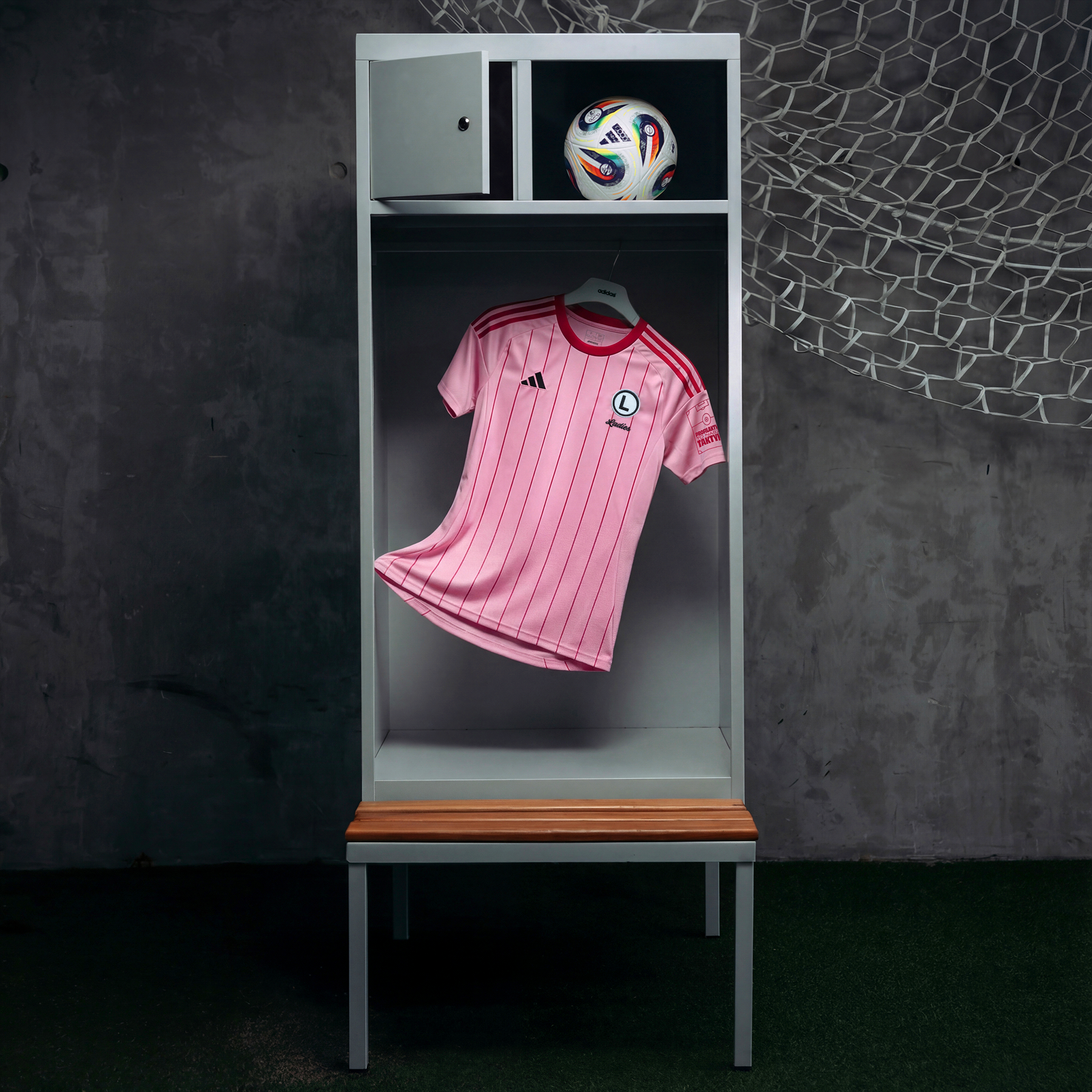 Prezentujemy wyjątkową odsłonę koszulki meczowej Legia Ladies, przygotowaną specjalnie na październikowe spotkania. Ten unikalny model w odcieniu pudrowego różu, przełamany klasycznymi czerwonymi prążkami, łączy w sobie sportową elegancję z silnym przesłaniem społecznym.