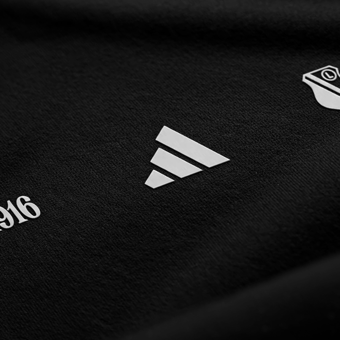Symbolika: Herb Legii Warszawa i data 1916 oraz logo adidas.