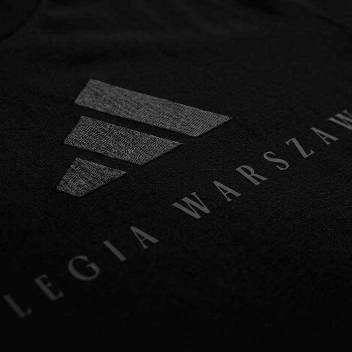 Front: Centralnie na klatce piersiowej, pod logo adidas, umieszczono elegancki napis LEGIA WARSZAWA.