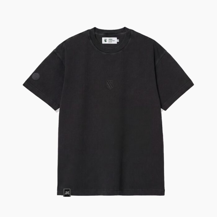 Na środku klatki piersiowej znajduje się niewielki, tonalny symbol wykonany w czerni. Subtelny i nienachalny, widoczny dopiero z bliska. Przód koszulki pozostaje niemal całkowicie czysty, dzięki czemu model zachowuje uniwersalny charakter i nie dominuje stylizacji.