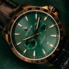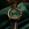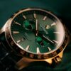 Zegarek przyciąga wzrok fakturowaną tarczą w kolorze głębokiej zieleni, na której widnieje herb Legii Warszawa. Wyjątkowy charakter tej edycji podkreśla złocona koperta oraz jubileuszowy napis „Anniversary 110 Years”, upamiętniający historyczną datę założenia klubu w 1916 roku. Całość dopełnia elegancki pasek wykonany z czarnej skóry, który nadaje zegarkowi klasycznego sznytu.